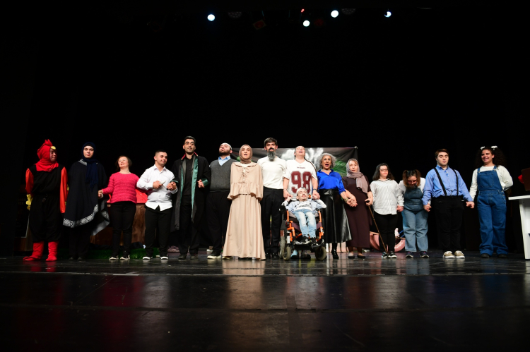 BURSA (İGFA) – Osmangazi Belediyesi’nin toplumsal farkındalığı artırma ve engelli bireylerin yaşamını kolaylaştırma amacıyla hayata geçirdiği tiyatro etkinliği, Ahmet Vefik Paşa Bursa Devlet Tiyatrosu’nda sahnelendi. Osmangazi Engelliler Meclisi’nin 6 ay süren hazırlıklarının ardından sahneye çıkan engelli bireyler, 3 kardeşin babalarından kalan miras hikayesini eğlenceli bir dille anlatan oyunda başarılı performanslarıyla izleyicilerin beğenisini topladı.